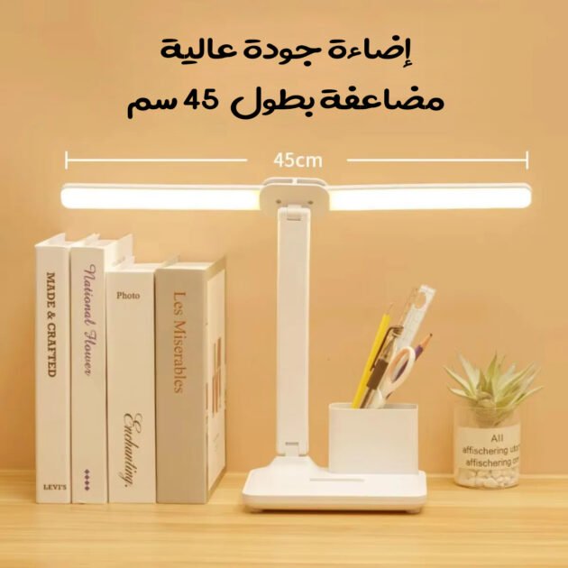 المكتبي LED القابل للطي والمتعدد الوظائف. مصمم خصيصاً لحماية العينين من التعب والإرهاق، يوفر إضاءة ناعمة ومتوازنة بدون وميض، مثالية للدراسة الطويلة، القراءة أو العمل في المنزل والمكتب.